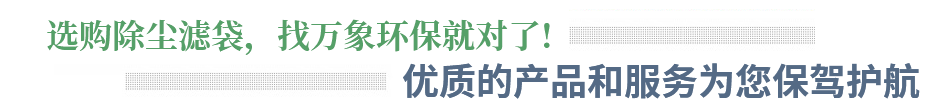 江蘇萬象環??萍加邢薰局饕獜氖赂鞣N除塵器(收塵器、積塵器),袋式除塵器、氣箱脈沖除塵器、單機除塵器;濾袋(除塵布袋、除塵濾袋、除塵袋、過濾氈、過濾布、收塵袋、積塵袋),高溫濾袋系列如氟美斯針刺氈濾袋、美塔斯針刺氈濾袋、玻纖針刺氈濾袋、玻纖布;中溫系列如PPS針刺氈濾袋、P84針刺氈濾袋、亞克力針刺氈濾袋;常溫系列如滌綸針刺氈濾袋、丙綸針刺氈濾袋、覆膜針刺氈以及涂層、拒水防油、防靜電系列和各種龍骨、電磁脈沖閥、控制儀等生產與加工,是 大型濾料廠家之一,員工余人,企業擁有專業檢測中心,具有完備的專業安裝和售后服務體系。